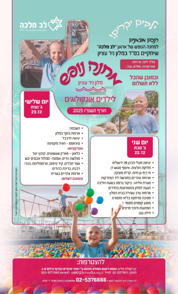 ארגון לב מלכה מוציא בחודש הקרוב ילדים חולי סרטן למחנה נופש